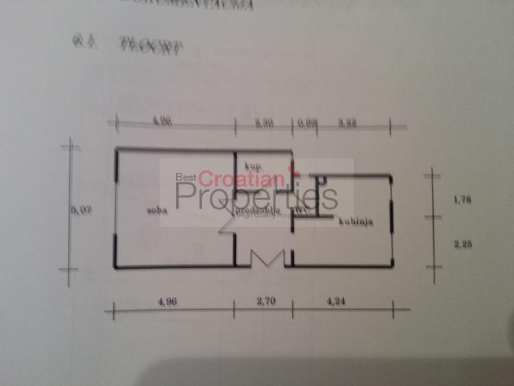 This very spacious 2 room. apartment of 57.04 m2 located in the basement treasures residential building, built in 1950 year. in the western city center, Mandalicina street.