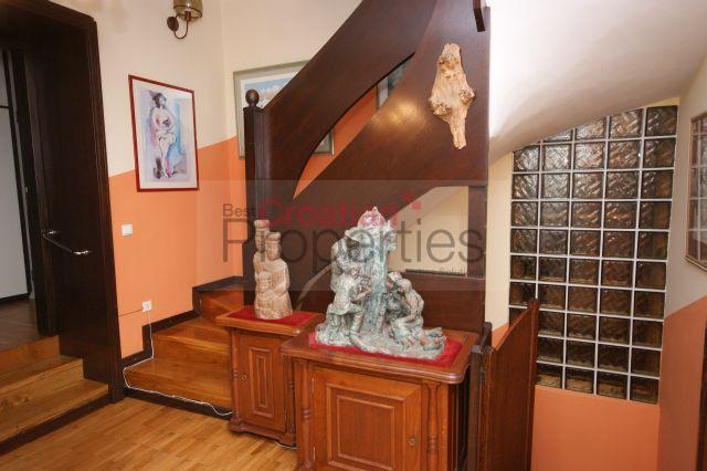 The house consists of decorated basement with a cellar and boiler room, ground floor is a large living room with open fireplace, a spacious kitchen with dining area, conservatory, bedroom with en suite bathroom and separate toilet, and in the attic there are four bedrooms with access to a large balcony, large gallery with built in wardrobes and a spacious bathroom.