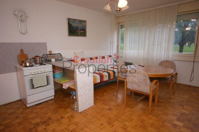 This highly functional smaller bedroom apartment of 45.59 m2, is located on the ground floor of a residential building in the center of Velika Gorica, in the street Slavko Kolar.